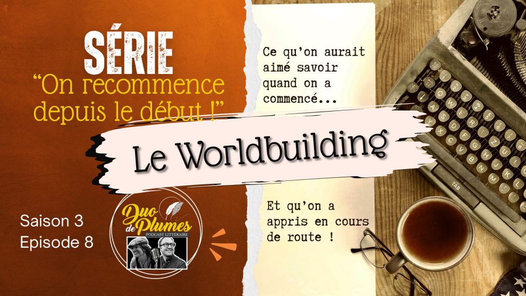 - On parle de Worldbuilding ! Episode 308Débuter en écriture : la construction de nos mondes imaginaires Bienvenue sur la chaîne du podcast littéraire « Duo de Plumes » avec Catherine Rolland et Cyril Vallée. Cet épisode s’adresse à tous ceux qui rêvent d’écrire, qui ont déjà commencé ou qui se posent mille questions sur le chemin vers la publication. Nous poursuivons… Lire la suite : On parle de Worldbuilding ! Episode 308